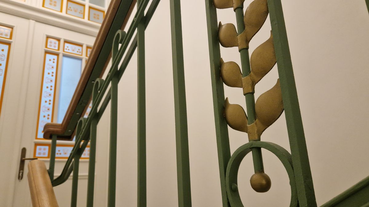 V rámci rekonstrukce činžovního domu bylo renovováno památkově chráněné žulové schodiště a ocelové zábradlí s dřevěným madlem. Vzhledem k realizaci v pozdní fázi rekonstrukce byly veškeré mnohonásobné a zašlé nátěry odstraněny pulzním laserem bez toho, aniž by bylo znečištěno již zrenovované okolí. Byla vyrobena nová madla dle původního vzoru a aplikovány nové nátěry v souladu s přáním investora a požadavky památkové péče.